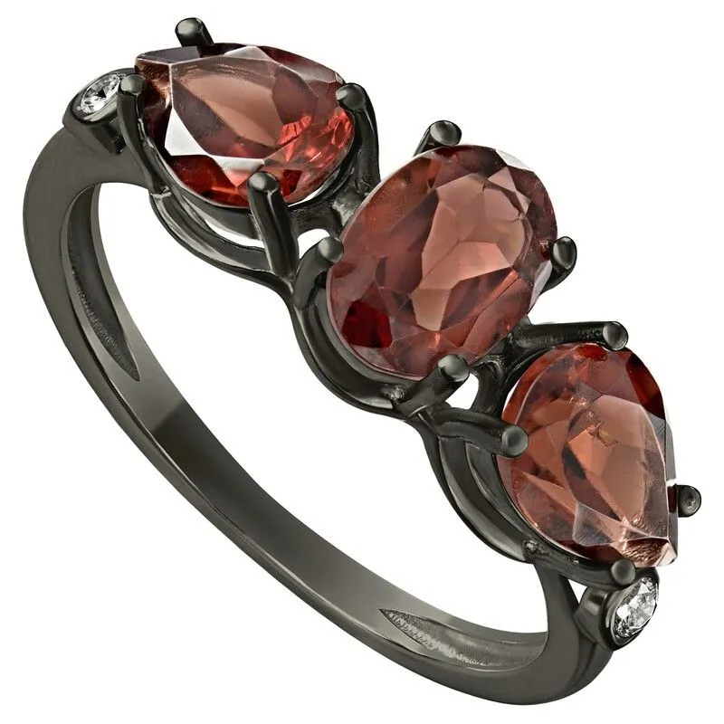 Серебряное кольцо с натуральным гранатом - коллекция Сансара / покрытие Черный Родий.Средний вес украшения с камнями 2.25 гр.Месторождение(я): Гранат (Кольский п-ов, Россия).Ювелирные вставки:Гранат (Натуральный) овал 5*7 мм., средний вес: 0.95 карат.Гранат (Натуральный) груша 5*7 мм., средний вес: 0.79 карат.Белый Нанокристалл круг 2 мм., средний вес: 0.06 карат.Все изделия собственного производства и имеют гарантию 12 месяцев. Арт. 8644BR. Гранат называют камнем любви. Он дарит своим обладательницам мудрость, а владельцам – решительность и храбрость. Данному камню присущи лечебные свойства, давным-давно он использовался при ранениях. Считалось, что он помогает поддерживать связь с миром мертвых.