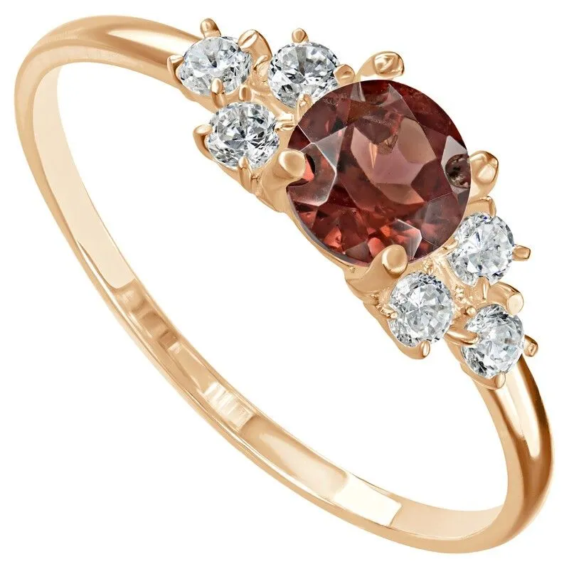 Серебряное кольцо с натуральным гранатом - коллекция Нова / покрытие Розовое Золото.Средний вес украшения с камнями 1.19 гр.Месторождение(я): Гранат (Кольский п-ов, Россия).Ювелирные вставки:Гранат (Натуральный) круг 5 мм., средний вес: 0.65 карат.Белый Нанокристалл круг 2 мм., средний вес: 0.06 карат.Все изделия собственного производства и имеют гарантию 12 месяцев. Арт. 8661PG. Гранат называют камнем любви. Он дарит своим обладательницам мудрость, а владельцам – решительность и храбрость. Данному камню присущи лечебные свойства, давным-давно он использовался при ранениях. Считалось, что он помогает поддерживать связь с миром мертвых.