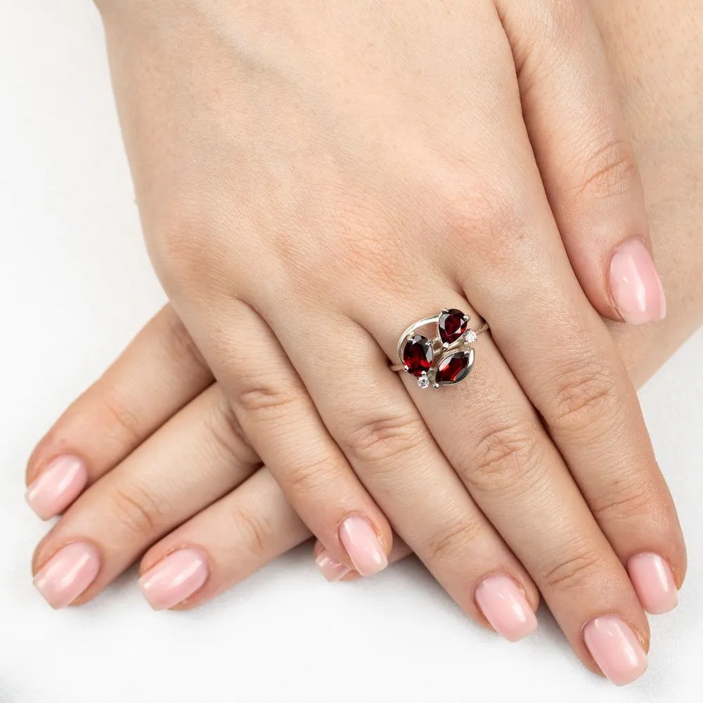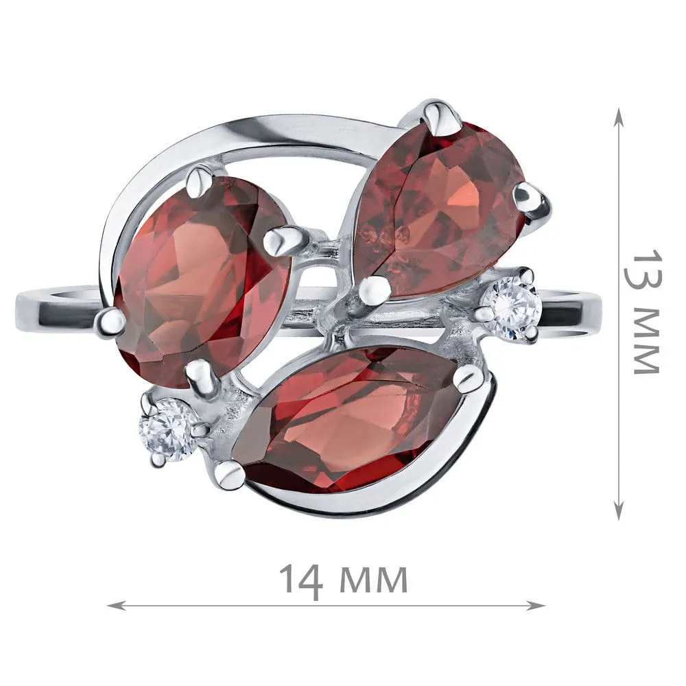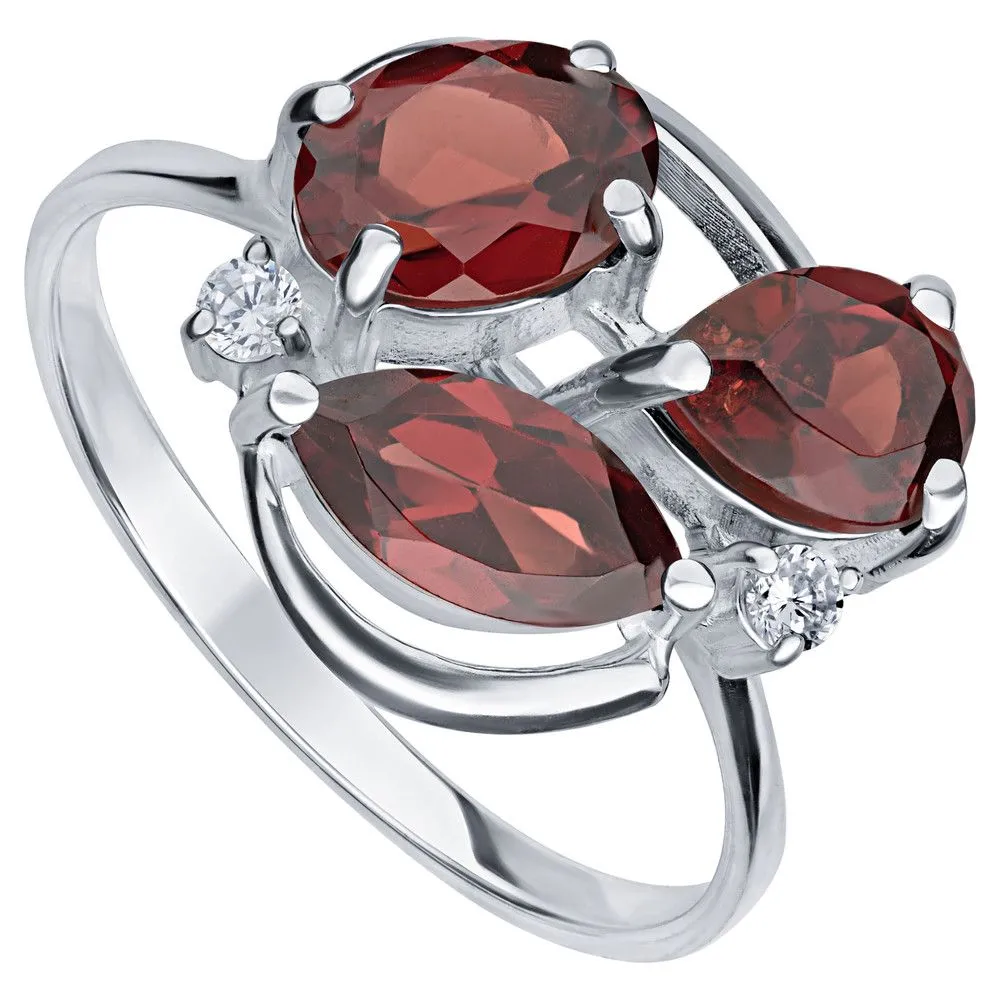 Серебряное кольцо с натуральным гранатом - коллекция Фортуна / Без покрытия. Средний вес украшения с камнями 2.92 гр. Месторождение: Гранат (Кольский п-ов, Россия) Ювелирные вставки: Гранат (Натуральный) груша 5*7 мм., средний вес: 0.79 карат. Гранат (Натуральный) овал 5*7 мм., средний вес: 0.95 карат. (Натуральный) круг 2 мм., средний вес: 0.06 карат. Все изделия собственного производства и имеют гарантию 12 месяцев. Арт. 8772NP. Гранат называют камнем любви. Он дарит своим обладательницам мудрость, а владельцам – решительность и храбрость. Данному камню присущи лечебные свойства, давным-давно он использовался при ранениях. Считалось, что он помогает поддерживать связь с миром мертвых.