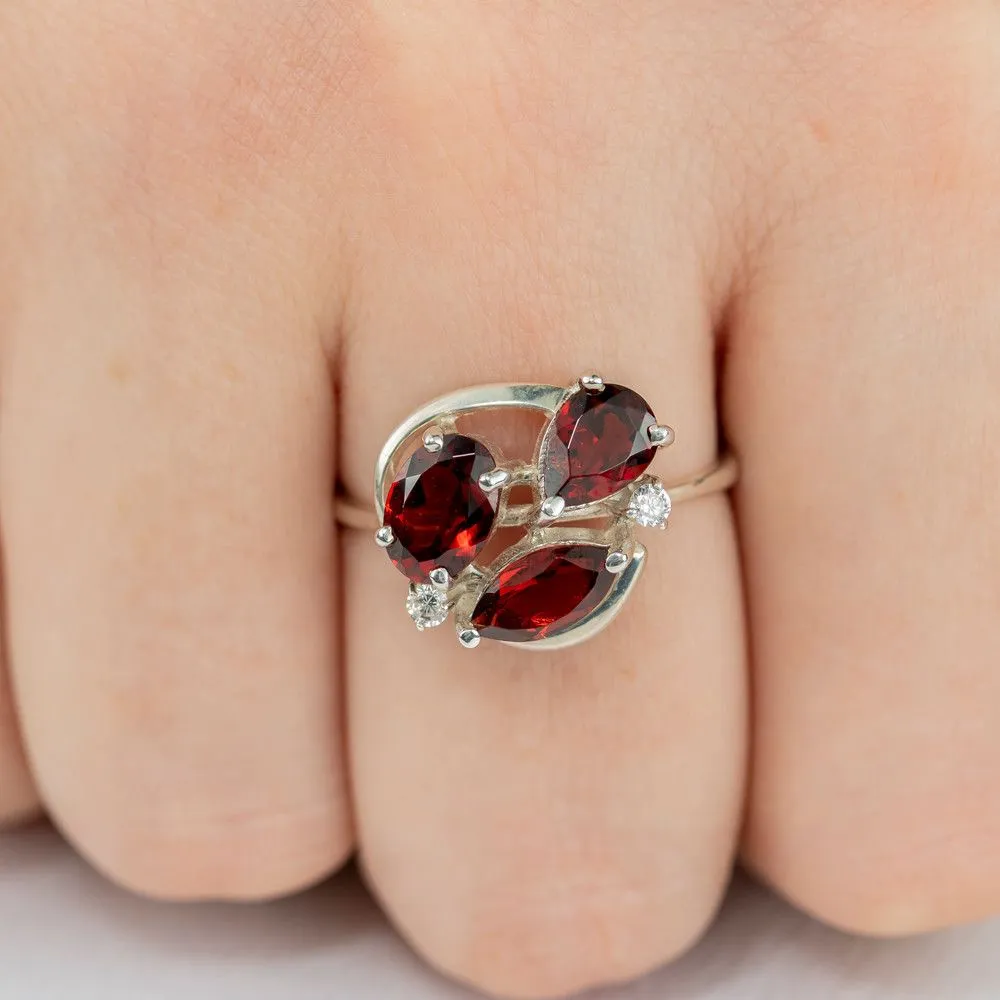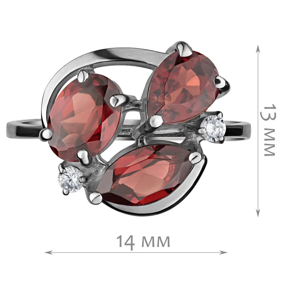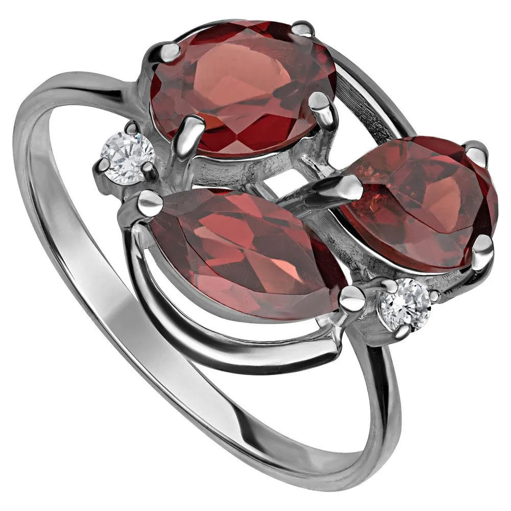 Серебряное кольцо с натуральным гранатом - коллекция Фортуна / покрытие Палладий. Средний вес украшения с камнями 2.96 гр. Месторождение: Гранат (Кольский п-ов, Россия) Ювелирные вставки: Гранат (Натуральный) груша 5*7 мм., средний вес: 0.79 карат. Гранат (Натуральный) овал 5*7 мм., средний вес: 0.95 карат. (Натуральный) круг 2 мм., средний вес: 0.06 карат. Все изделия собственного производства и имеют гарантию 12 месяцев. Арт. 8772PD. Гранат называют камнем любви. Он дарит своим обладательницам мудрость, а владельцам – решительность и храбрость. Данному камню присущи лечебные свойства, давным-давно он использовался при ранениях. Считалось, что он помогает поддерживать связь с миром мертвых.
