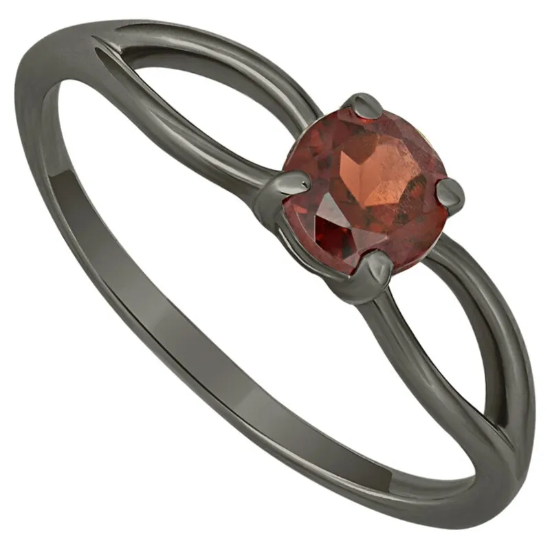 Серебряное кольцо с натуральным гранатом - коллекция Мона, покрытие Черный Родий. Средний вес украшения с камнем составляет 1.61 гр. Месторождение(я): Гранат (Кольский п-ов, Россия).