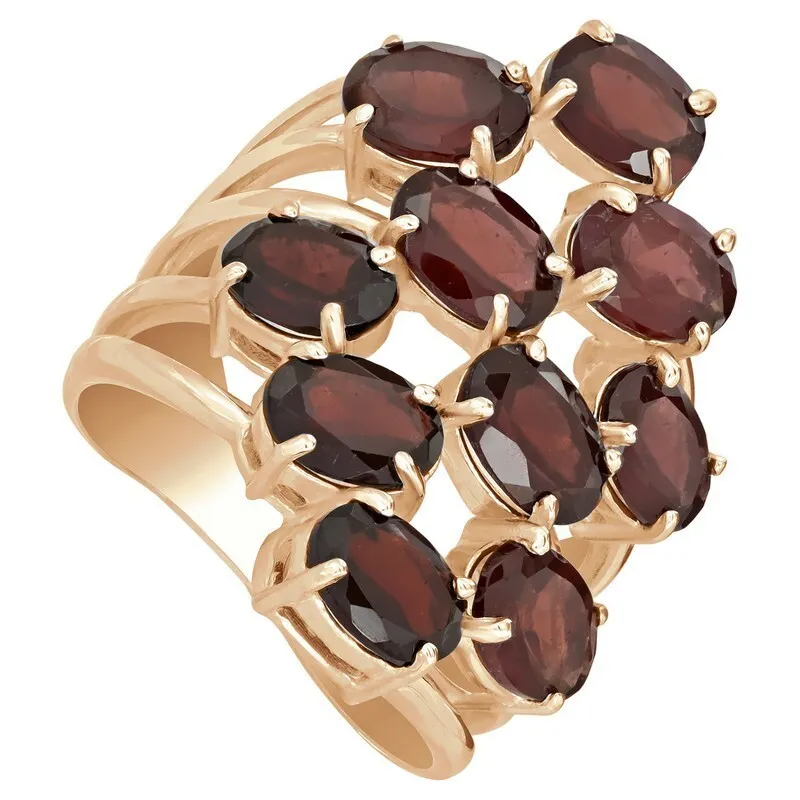Серебряное кольцо с натуральным гранатом - коллекция Аэлита. Серебряное кольцо 925 пробы с покрытием розовое золото. Цвет покрытия соответствует швейцарскому цветовому стандарту NIHS -4N и цвету розового золота 585 в России. На последней фотографии мы разместили сравнительную фотографию 3 цвета золотого покрытия. Помимо предания золотого цвета Вашему изделию, тонкий слой золота защищает от окисления. Для более стойкого эффекта золочения и долговечности покрытия мы дополнительно наносим подслой палладия (Pd). Средний вес изделия с камнями 9.52 гр. Месторождение: Гранат (Кольский п-ов, Россия). Гранат (Натуральный) овал 5*7 мм., средний вес: 1.06 карат. Все изделия собственного производства, гарантия 12 месяцев. Арт. 7841