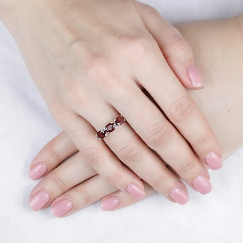 Серебряное кольцо с натуральным гранатом - коллекция Муза / покрытие Чистое Серебро