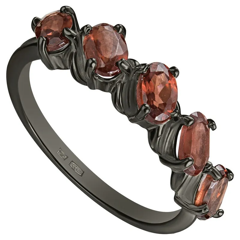 Серебряное кольцо с натуральным гранатом - коллекция Колосок, покрытие Черный Родий.