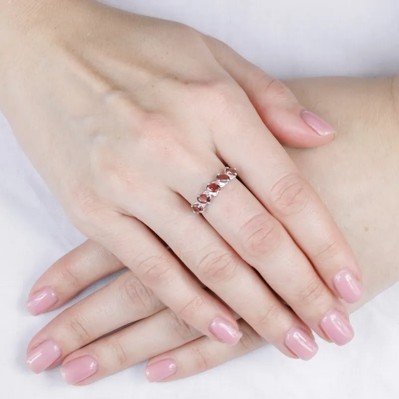 Серебряное кольцо с натуральным гранатом - коллекция Колосок / покрытие Белый Родий