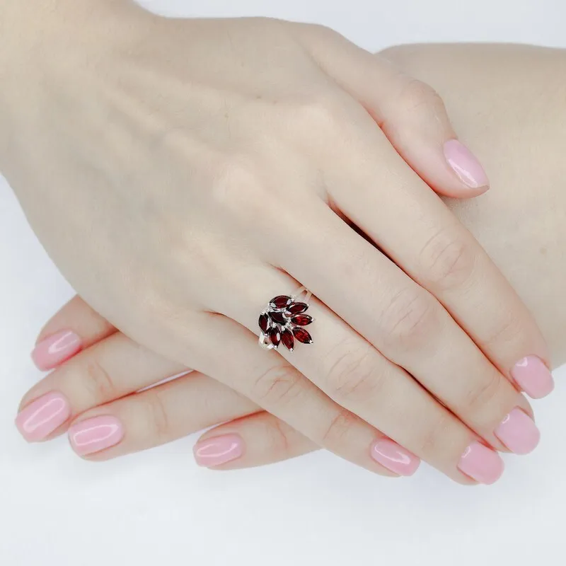 Серебряное кольцо с натуральным гранатом - коллекция Искра / покрытие Палладий