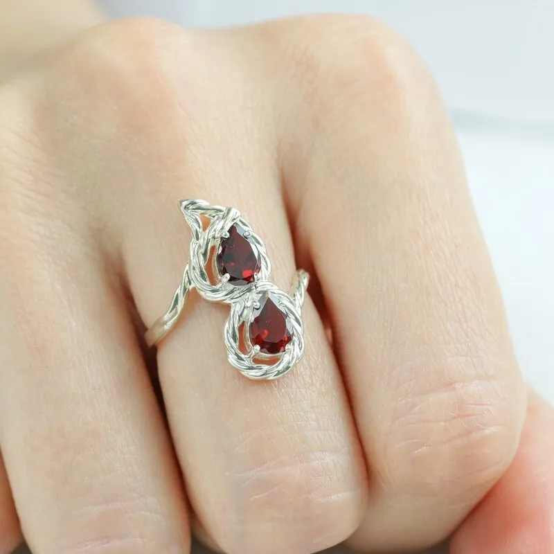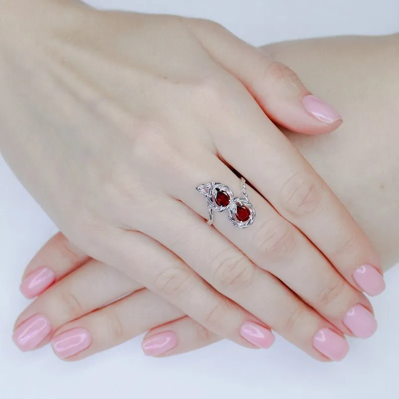 Серебряное кольцо с натуральным гранатом - коллекция Ривьера / покрытие Белый Родий
