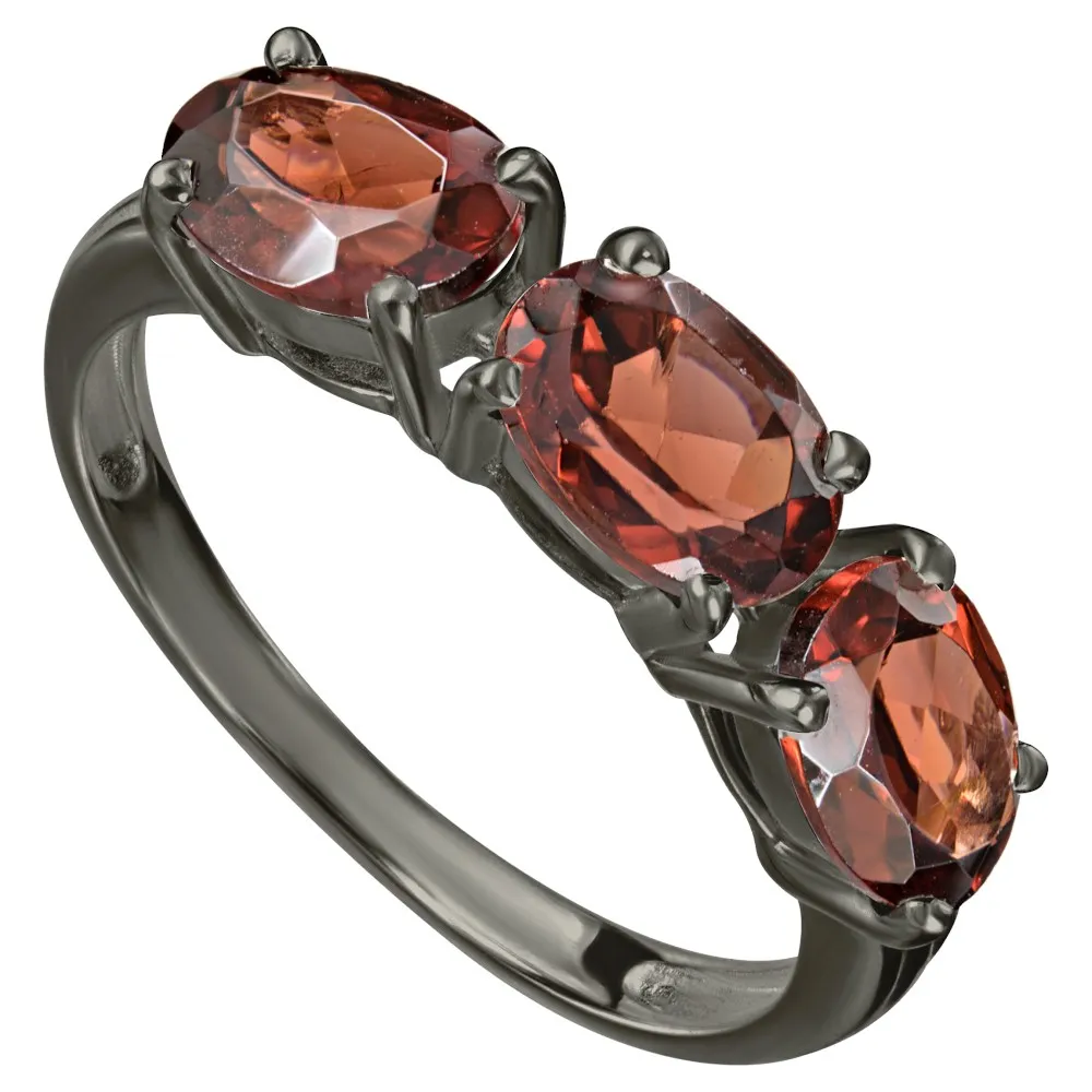Серебряное кольцо с натуральным гранатом - коллекция Муза, покрытие Черный Родий.