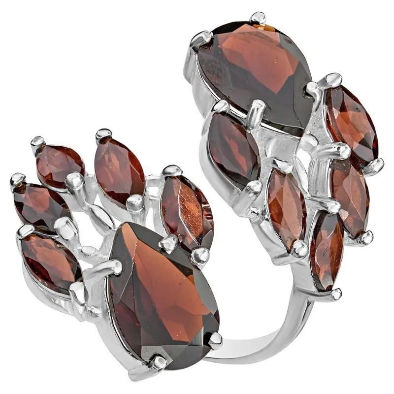 Серебряное кольцо с натуральным гранатом - коллекция Зарница / покрытие Чистое Серебро