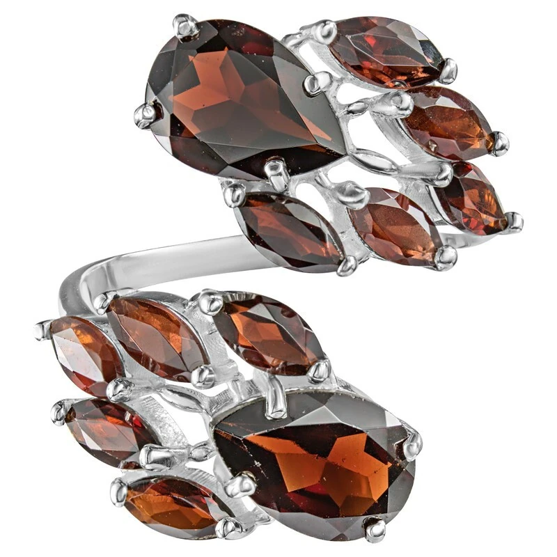 Серебряное кольцо с натуральным гранатом - коллекция Зарница / покрытие Белый Родий
