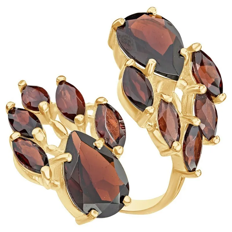 Серебряное кольцо с натуральным гранатом - коллекция Зарница / покрытие Желтое Золото