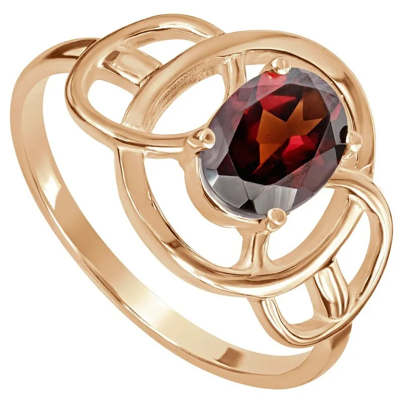Серебряное кольцо с натуральным гранатом - коллекция Юнона. Серебряное кольцо 925 пробы с покрытием розовое золото. Цвет покрытия соответствует швейцарскому цветовому стандарту NIHS -4N и цвету розового золота 585 в России. На последней фотографии мы разместили сравнительную фотографию 3 цвета золотого покрытия. Помимо предания золотого цвета Вашему изделию, тонкий слой золота защищает от окисления. Для более стойкого эффекта золочения и долговечности покрытия мы дополнительно наносим подслой палладия (Pd). Средний вес изделия с камнями 2.38 гр. Месторождение: Гранат (Кольский п-ов, Россия). Гранат (Натуральный) овал 6*8 мм., средний вес: 1.43 карат. Все изделия собственного производства, гарантия 12 месяцев. Арт. 8415. Гранат называют камнем любви. Он дарит своим обладательницам мудрость, а владельцам – решительность и храбрость. Данному камню присущи лечебные свойства, давным-давно он использовался при ранениях. Считалось, что он помогает поддерживать связь с миром мертвых.