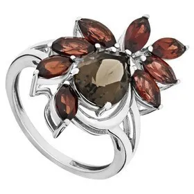 Стильное серебряное кольцо "Элегия" с натуральными камнями раухтопаз (дымчатый кварц) и гранат, покрытие Белый Родий. Средний вес украшения с камнями 3,6 гр. Месторождение(я) камней: Раухтопаз (Дымчатый кварц)(м-ние Додо ХМАО, Россия), Гранат (Кольский п-ов, Россия). Раухтопаз (Натуральный) груша: 7*10 мм., средний вес 1,85 карат. Гранат (Натуральный) маркиз: 3*6 мм., средний вес 0,35 карат. Размер лицевой части: 15*23 мм. Все изделия собственного производства и имеют гарантию 12 месяцев, к каждому изделию прилагается паспорт. Арт. 6213WR