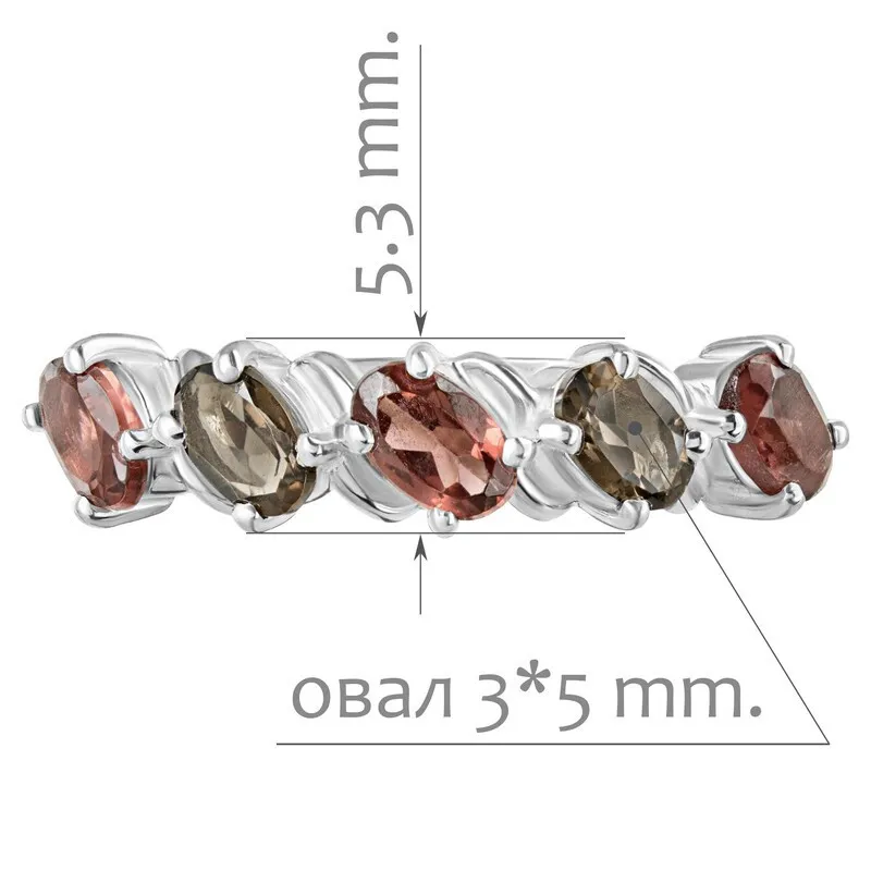 Серебряное кольцо с натуральными камнями гранат и раухтопаз - коллекция Колосок. Средний вес изделия с камнями 2.31 гр. Месторождения: Гранат (Кольский п-ов, Россия) и Раухтопаз (Дымчатый кварц)(м-ие Додо ХМАО, Россия) Гранат (Натуральный) овал 3*5 мм., средний вес: 0.34 карат. Раухтопаз (Натуральный) овал 3*5 мм., средний вес: 0.32 карат. Все изделия собственного производства, гарантия 12 месяцев. Арт. 8040