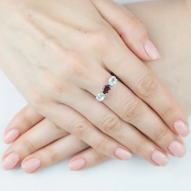 Серебряное кольцо с натуральными камнями гранат и голубой топаз - коллекция Муза / Без покрытия