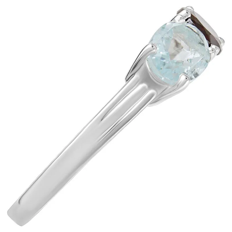 Серебряное кольцо с натуральными камнями гранат и голубой топаз - коллекция Муза / покрытие Белый Родий