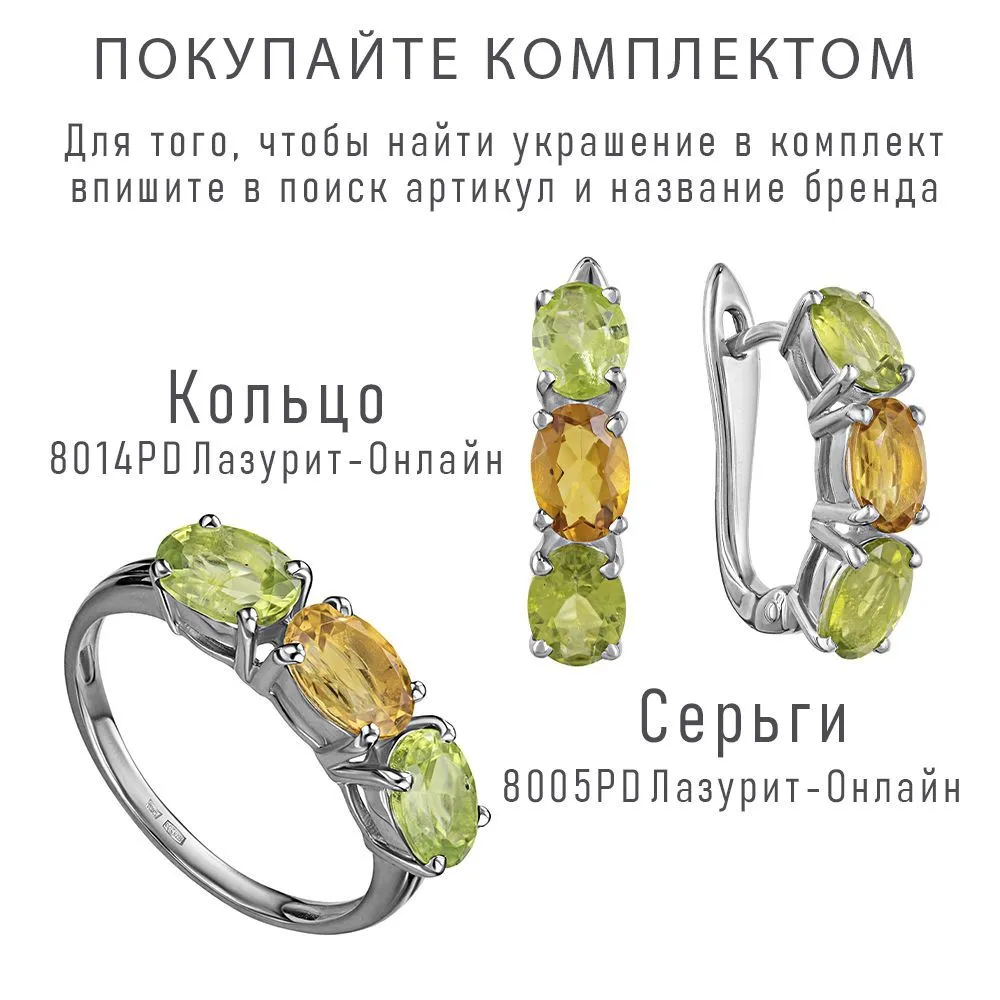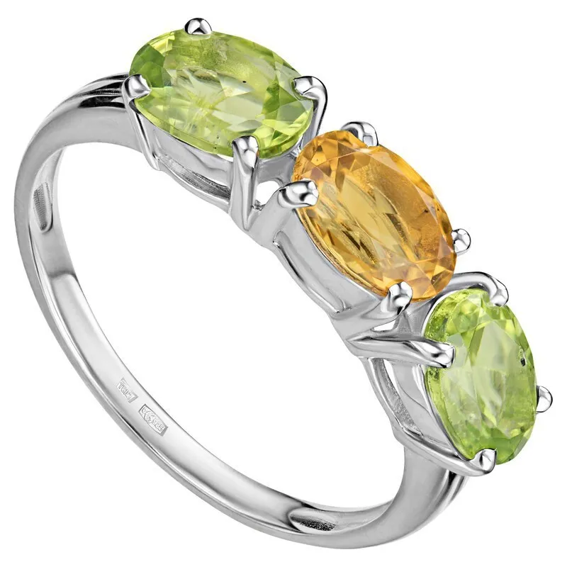 Серебряное кольцо с натуральными камнями цитрин и хризолит - коллекция Муза. Средний вес изделия с камнями 2.48гр. Месторождение(я): Цитрин (Урал, Россия) и Хризолит (Якутия, Россия). Цитрин (Натуральный) овал 5*7 мм., средний вес: 0.90 карат. Хризолит (Натуральный) овал 5*7 мм., средний вес: 0.85 карат. Все изделия собственного производства, гарантия 12 месяцев. Арт. 8014