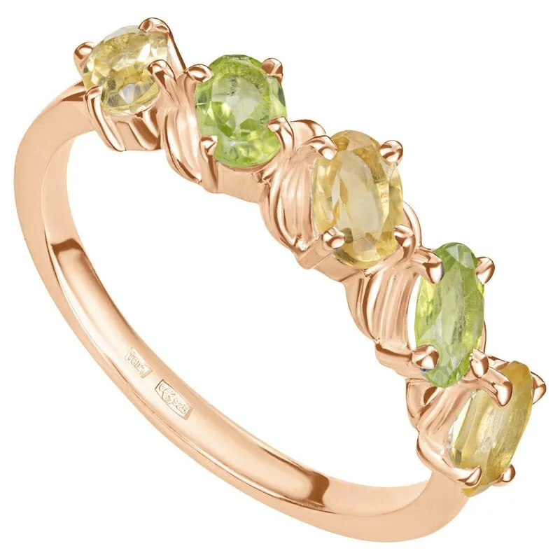 Серебряное кольцо с натуральными камнями цитрин и хризолит - коллекция Колосок. Серебряное кольцо 925 пробы с покрытием красное золото. Цвет покрытия соответствует швейцарскому цветовому стандарту NIHS -5N и цвету красного золота 585 в России. На последней фотографии мы разместили сравнительную фотографию 3 цвета золотого покрытия. Помимо предания золотого цвета Вашему изделию, тонкий слой золота защищает от окисления. Для более стойкого эффекта золочения и долговечности покрытия мы дополнительно наносим подслой палладия (Pd). Средний вес изделия с камнями 2.18 гр. Месторождения: Цитрин (Урал, Россия) и Хризолит (Якутия, Россия) Цитрин (Натуральный) овал 3*5 мм., средний вес: 0.24 карат. Хризолит (Натуральный) овал 3*5 мм., средний вес: 0.25 карат. Все изделия собственного производства, гарантия 12 месяцев. Арт. 8045