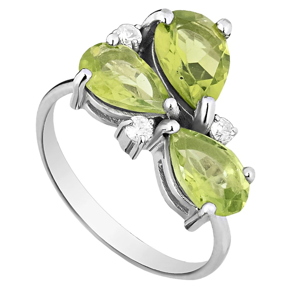 Серебряное кольцо "Капель" с натуральным хризолитом, покрытие Палладий. Средний вес украшения с камнями 3,05 гр. Месторождение(я) камней: Хризолит (Якутия, Россия) . Хризолит (Натуральный) груша: 6*9 мм., средний вес 1,00 карат. Хризолит (Натуральный) груша: 5*7 мм., средний вес 0,75 карат. Циркон белый (Натуральный) круг: 2 мм., средний вес 0,05 карат.