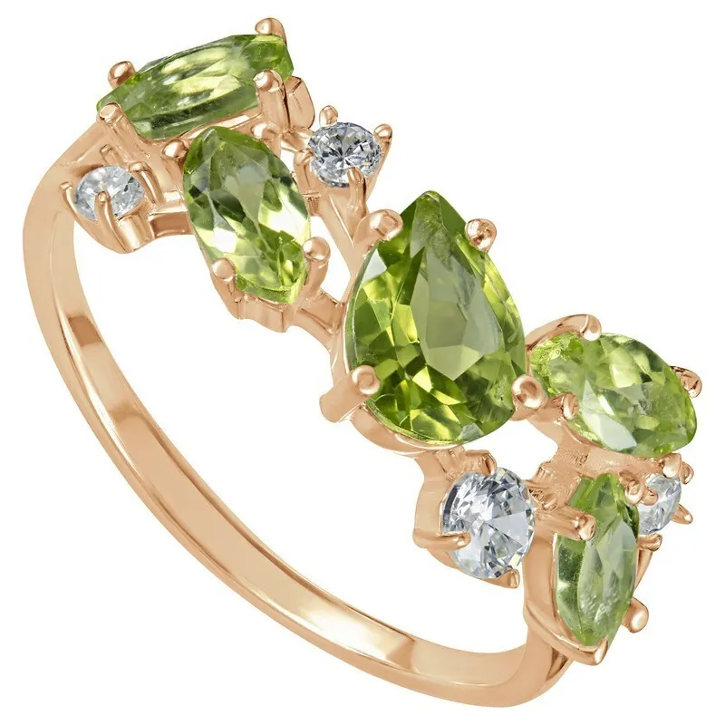 Серебряное кольцо с натуральным хризолитом - коллекция Росинка. Серебряное кольцо 925 пробы с покрытием розовое золото. Цвет покрытия соответствует швейцарскому цветовому стандарту NIHS -4N и цвету розового золота 585 в России. На последней фотографии мы разместили сравнительную фотографию 3 цвета золотого покрытия. Помимо предания золотого цвета Вашему изделию, тонкий слой золота защищает от окисления. Для более стойкого эффекта золочения и долговечности покрытия мы дополнительно наносим подслой палладия (Pd). Средний вес изделия с камнями 2.44 гр. Месторождение: Хризолит (Якутия, Россия). Хризолит (Натуральный) груша 5*7 мм., средний вес: 0.55 карат. Все изделия собственного производства, гарантия 12 месяцев. Арт. 8438. Хризолит – камень, который называют «вечерним изумрудом» за удивительную способность менять цвет в зависимости от освещения. Считается, что хризолит очень любила Клеопатра. Хризолитовый порошок используется для общего восстановления организма, для очищения пищи от ядов и токсинов и улучшения работы ЖКТ. Кроме того, минерал защищает от опасностей и укрепляет дружеские отношения.
