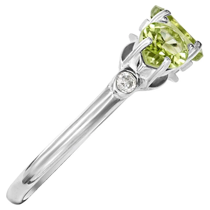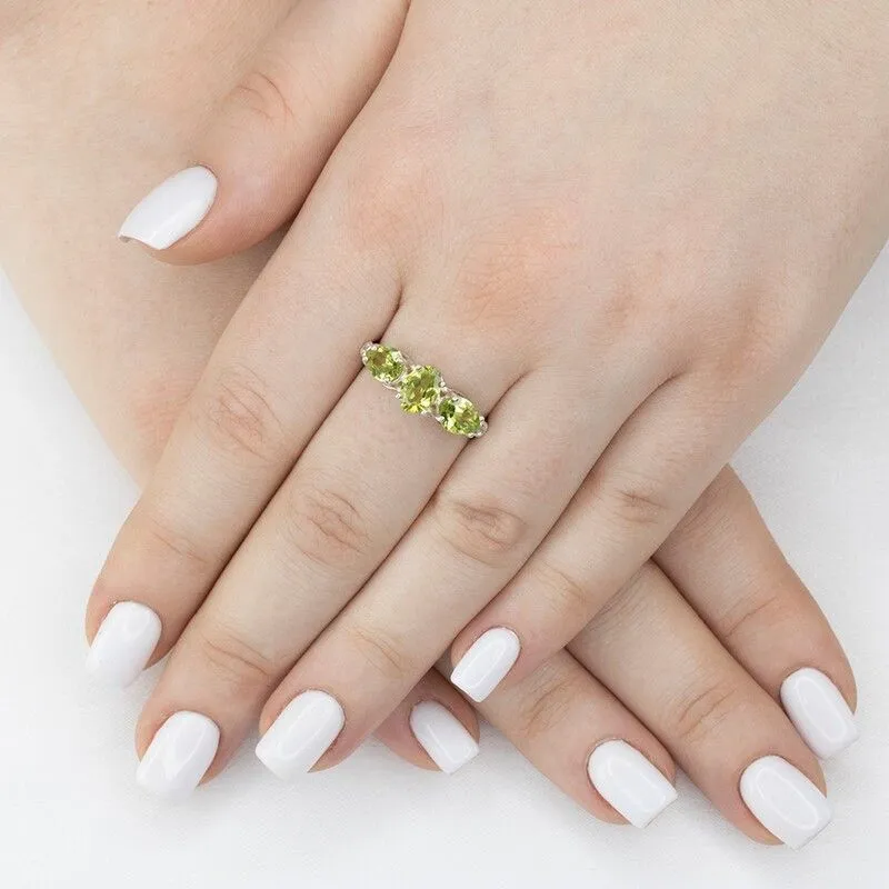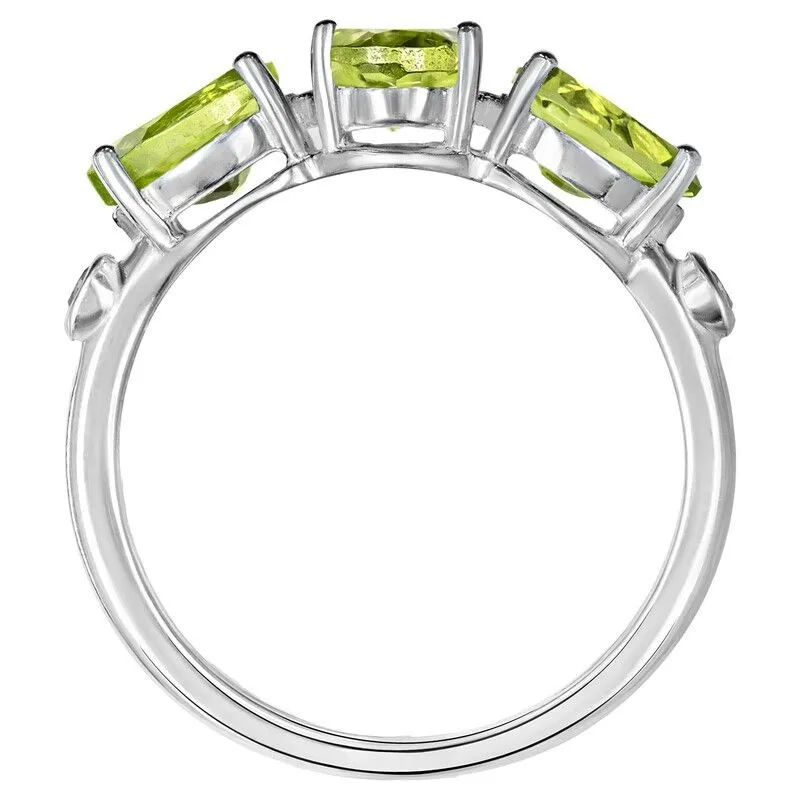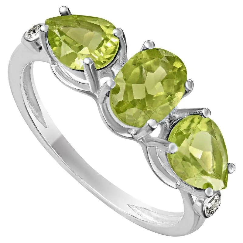 Серебряное кольцо с натуральным хризолитом - коллекция Сансара / покрытие Белый Родий.Средний вес украшения с камнями 2.29 гр.Месторождение(я): Хризолит (Якутия, Россия).Ювелирные вставки:Хризолит (Натуральный) овал 5*7 мм., средний вес: 0.84 карат.Хризолит (Натуральный) груша 5*7 мм., средний вес: 0.55 карат.Белый Нанокристалл круг 2 мм., средний вес: 0.06 карат.Все изделия собственного производства и имеют гарантию 12 месяцев. Арт. 8645WR. Хризолит – камень, который называют «вечерним изумрудом» за удивительную способность менять цвет в зависимости от освещения. Считается, что хризолит очень любила Клеопатра. Хризолитовый порошок используется для общего восстановления организма, для очищения пищи от ядов и токсинов и улучшения работы ЖКТ. Кроме того, минерал защищает от опасностей и укрепляет дружеские отношения.