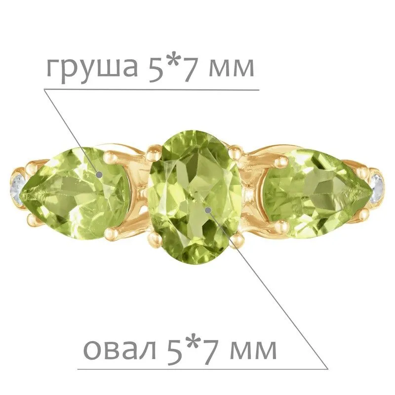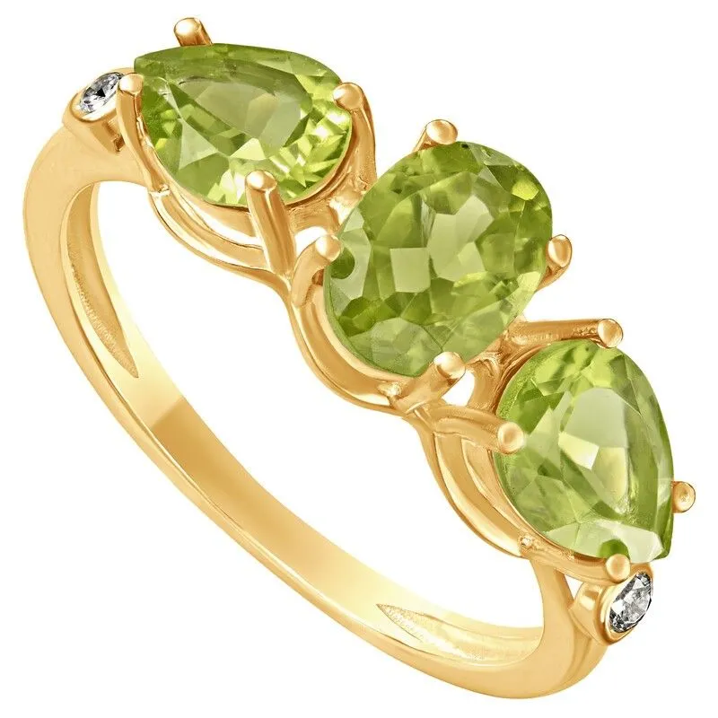 Серебряное кольцо с натуральным хризолитом - коллекция Сансара / покрытие Желтое Золото.Средний вес украшения с камнями 2.24 гр.Месторождение(я): Хризолит (Якутия, Россия).Ювелирные вставки:Хризолит (Натуральный) овал 5*7 мм., средний вес: 0.84 карат.Хризолит (Натуральный) груша 5*7 мм., средний вес: 0.55 карат.Белый Нанокристалл круг 2 мм., средний вес: 0.06 карат.Все изделия собственного производства и имеют гарантию 12 месяцев. Арт. 8645YG. Хризолит – камень, который называют «вечерним изумрудом» за удивительную способность менять цвет в зависимости от освещения. Считается, что хризолит очень любила Клеопатра. Хризолитовый порошок используется для общего восстановления организма, для очищения пищи от ядов и токсинов и улучшения работы ЖКТ. Кроме того, минерал защищает от опасностей и укрепляет дружеские отношения.
