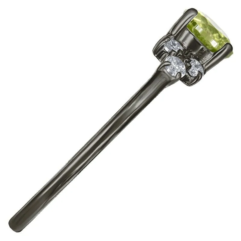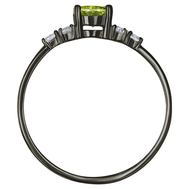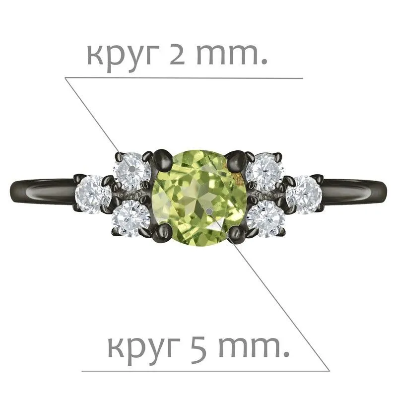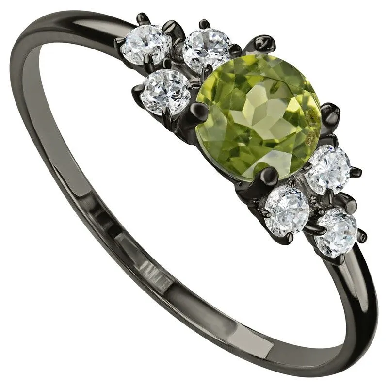 Серебряное кольцо с натуральным хризолитом - коллекция Нова / покрытие Черный Родий.Средний вес украшения с камнями 1.22 гр.Месторождение(я): Хризолит (Якутия, Россия).Ювелирные вставки:Хризолит (Натуральный) круг 5 мм., средний вес: 0.56 карат.Белый Нанокристалл круг 2 мм., средний вес: 0.06 карат.Все изделия собственного производства и имеют гарантию 12 месяцев. Арт. 8662BR. Хризолит – камень, который называют «вечерним изумрудом» за удивительную способность менять цвет в зависимости от освещения. Считается, что хризолит очень любила Клеопатра. Хризолитовый порошок используется для общего восстановления организма, для очищения пищи от ядов и токсинов и улучшения работы ЖКТ. Кроме того, минерал защищает от опасностей и укрепляет дружеские отношения.