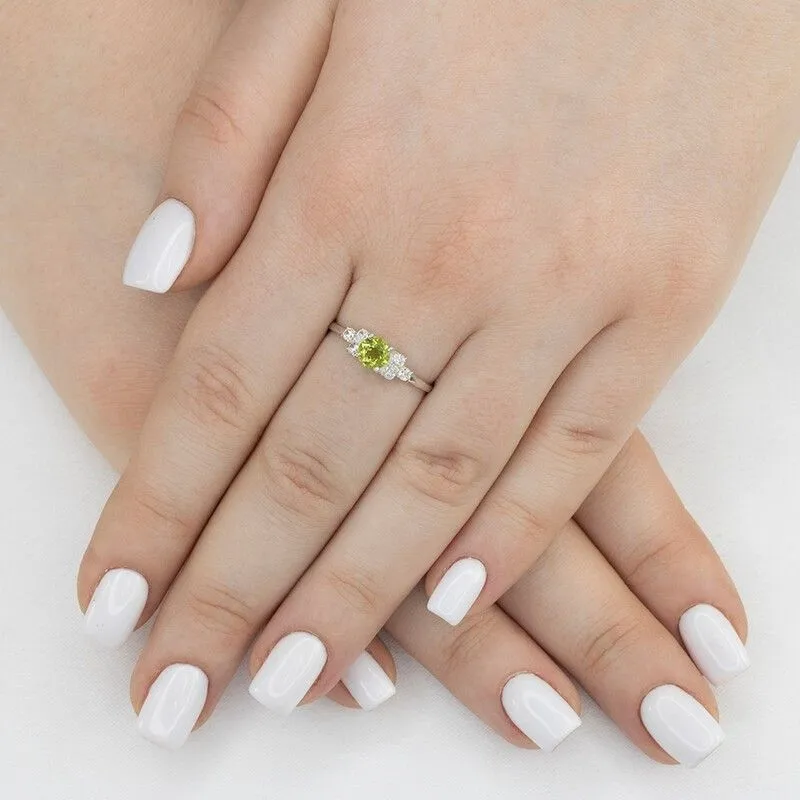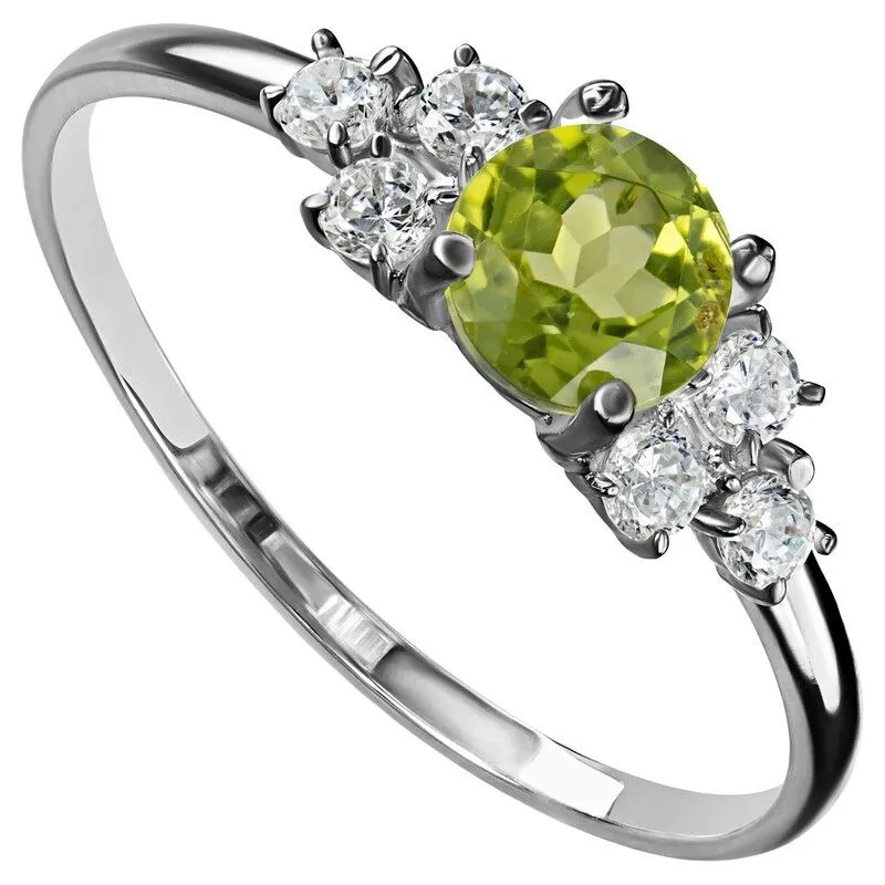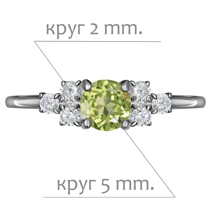 Серебряное кольцо с натуральным хризолитом - коллекция Нова / покрытие Палладий.Средний вес украшения с камнями 1.28 гр.Месторождение(я): Хризолит (Якутия, Россия).Ювелирные вставки:Хризолит (Натуральный) круг 5 мм., средний вес: 0.56 карат.Белый Нанокристалл круг 2 мм., средний вес: 0.06 карат.Все изделия собственного производства и имеют гарантию 12 месяцев. Арт. 8662PD. Хризолит – камень, который называют «вечерним изумрудом» за удивительную способность менять цвет в зависимости от освещения. Считается, что хризолит очень любила Клеопатра. Хризолитовый порошок используется для общего восстановления организма, для очищения пищи от ядов и токсинов и улучшения работы ЖКТ. Кроме того, минерал защищает от опасностей и укрепляет дружеские отношения.