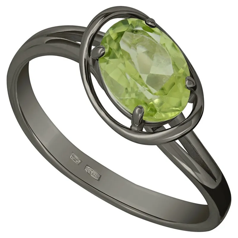 Серебряное кольцо с натуральным хризолитом - коллекция Фрейя, покрытие Черный Родий. Средний вес украшения с камнем составляет 2.39 гр. Месторождение(я): Хризолит (Якутия, Россия).