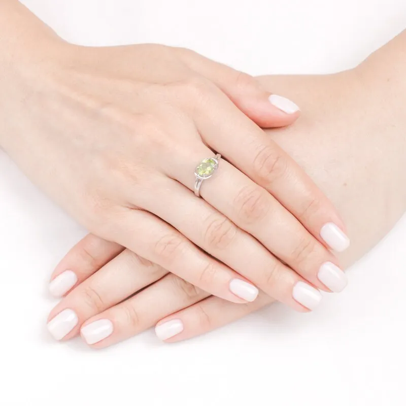 Серебряное кольцо с натуральным хризолитом - коллекция Фрейя / Без покрытия