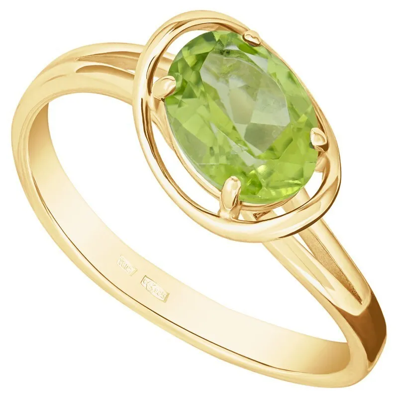 Серебряное кольцо с натуральным хризолитом - коллекция Фрейя. Серебряное кольцо 925 пробы с покрытием желтое золото. Цвет покрытия соответствует швейцарскому цветовому стандарту NIHS -FF24ct и цвету чистого золото 999.99. На последней фотографии мы разместили сравнительную фотографию 3 цвета золотого покрытия. Помимо предания золотого цвета Вашему изделию, тонкий слой золота защищает от окисления. Для более стойкого эффекта золочения и долговечности покрытия мы дополнительно наносим подслой палладия (Pd). Средний вес изделия с камнем составляет 2.39 гр. Месторождение(я): Хризолит (Якутия, Россия). Хризолит (Натуральный) овал 6*8 мм., средний вес: 1.34 карат. Все изделия собственного производства, гарантия 12 месяцев. Арт. 7734. Хризолит – камень, который называют «вечерним изумрудом» за удивительную способность менять цвет в зависимости от освещения. Считается, что хризолит очень любила Клеопатра. Хризолитовый порошок используется для общего восстановления организма, для очищения пищи от ядов и токсинов и улучшения работы ЖКТ. Кроме того, минерал защищает от опасностей и укрепляет дружеские отношения.