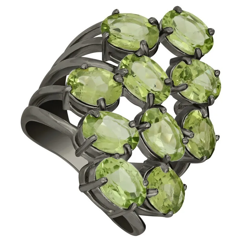 Серебряное кольцо с натуральным хризолитом - коллекция Аэлита, покрытие Черный Родий.