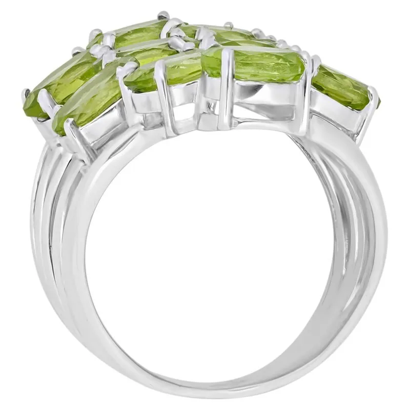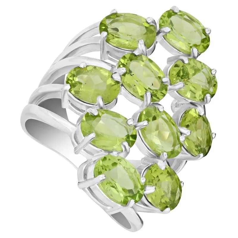 Серебряное кольцо с натуральным хризолитом - коллекция Аэлита. Средний вес изделия с камнями 9.67 гр. Месторождение: Хризолит (Якутия, Россия). Хризолит (Натуральный) овал 5*7 мм., средний вес: 0.85 карат. Все изделия собственного производства, гарантия 12 месяцев. Арт. 7837. Хризолит – камень, который называют «вечерним изумрудом» за удивительную способность менять цвет в зависимости от освещения. Считается, что хризолит очень любила Клеопатра. Хризолитовый порошок используется для общего восстановления организма, для очищения пищи от ядов и токсинов и улучшения работы ЖКТ. Кроме того, минерал защищает от опасностей и укрепляет дружеские отношения.