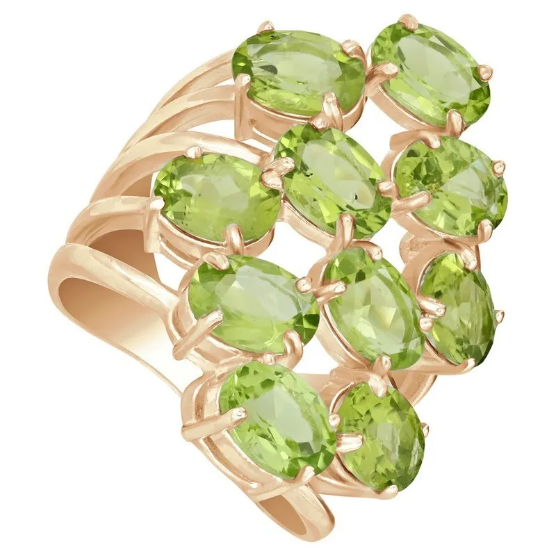 Серебряное кольцо с натуральным хризолитом - коллекция Аэлита. Серебряное кольцо 925 пробы с покрытием розовое золото. Цвет покрытия соответствует швейцарскому цветовому стандарту NIHS -4N и цвету розового золота 585 в России. На последней фотографии мы разместили сравнительную фотографию 3 цвета золотого покрытия. Помимо предания золотого цвета Вашему изделию, тонкий слой золота защищает от окисления. Для более стойкого эффекта золочения и долговечности покрытия мы дополнительно наносим подслой палладия (Pd). Средний вес изделия с камнями 9.67 гр. Месторождение: Хризолит (Якутия, Россия). Хризолит (Натуральный) овал 5*7 мм., средний вес: 0.85 карат. Все изделия собственного производства, гарантия 12 месяцев. Арт. 7837. Хризолит – камень, который называют «вечерним изумрудом» за удивительную способность менять цвет в зависимости от освещения. Считается, что хризолит очень любила Клеопатра. Хризолитовый порошок используется для общего восстановления организма, для очищения пищи от ядов и токсинов и улучшения работы ЖКТ. Кроме того, минерал защищает от опасностей и укрепляет дружеские отношения.