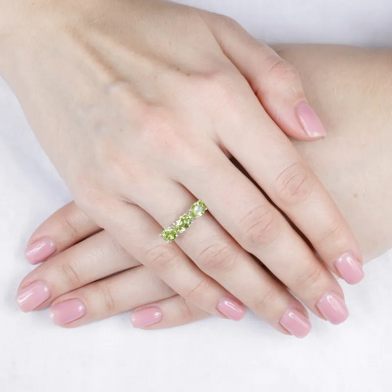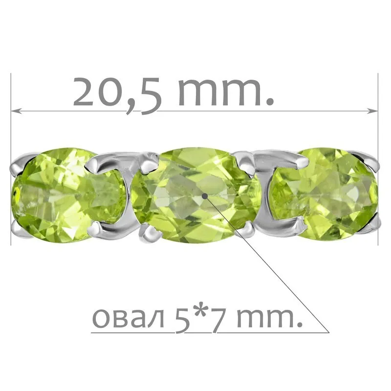 Серебряное кольцо с натуральным хризолитом - коллекция Муза / покрытие Белый Родий