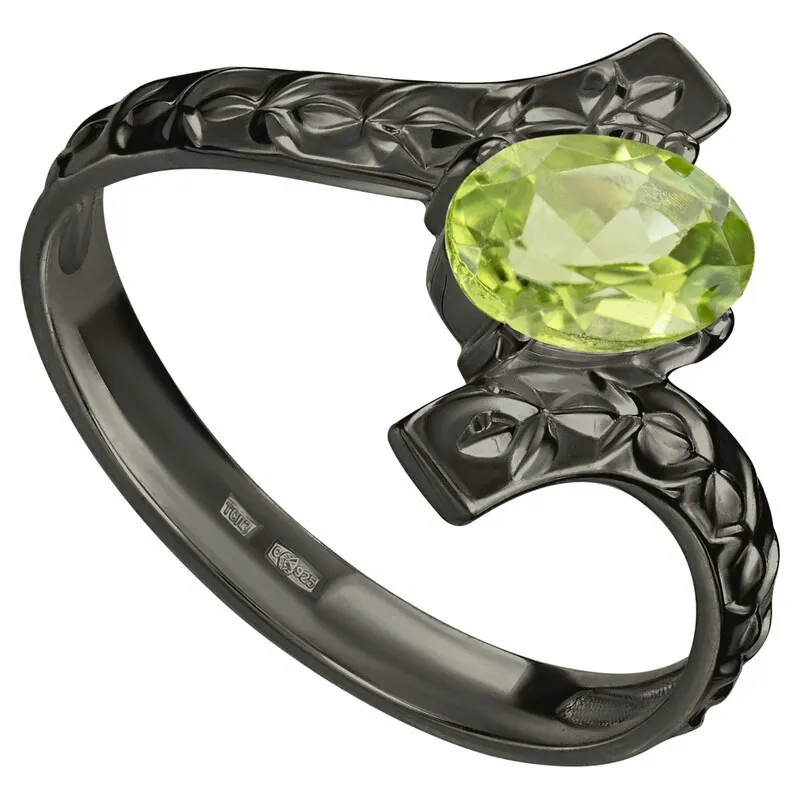 Серебряное кольцо с натуральным хризолитом - коллекция Тея, покрытие Черный Родий.