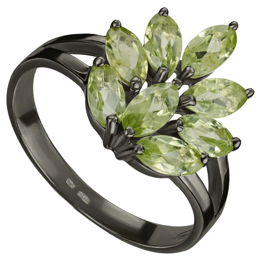 Серебряное кольцо с натуральным хризолитом - коллекция Искра, покрытие Черный Родий.