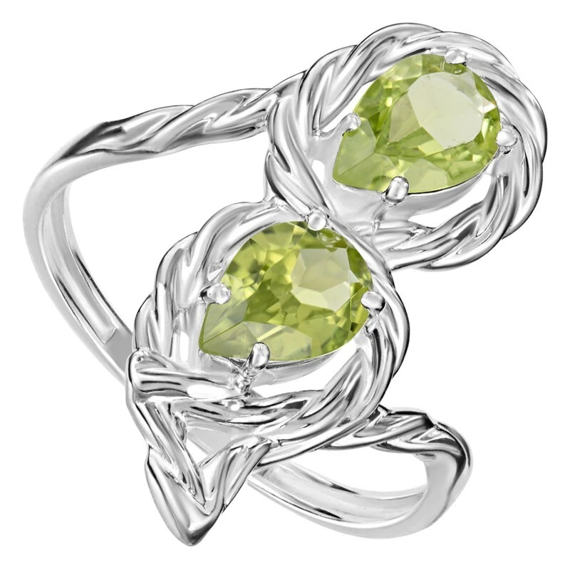 Серебряное кольцо с натуральным хризолитом - коллекция Ривьера / покрытие Чистое Серебро