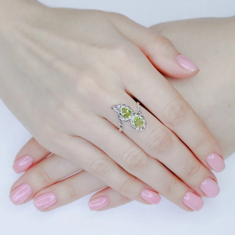 Серебряное кольцо с натуральным хризолитом - коллекция Ривьера / Без покрытия