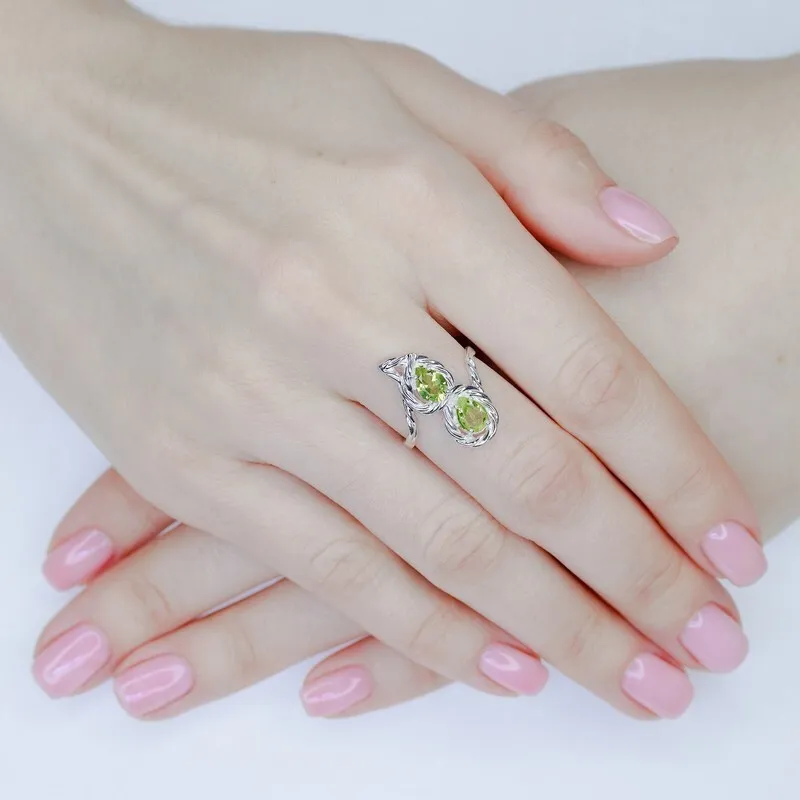 Серебряное кольцо с натуральным хризолитом - коллекция Ривьера / покрытие Палладий