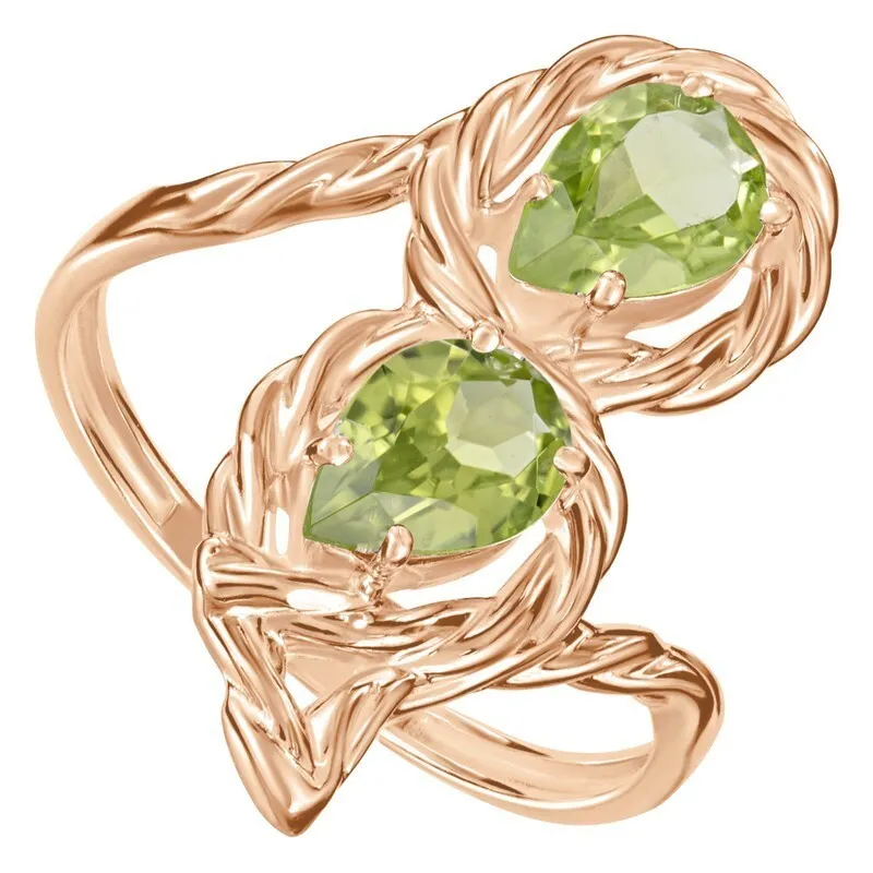 Серебряное кольцо с натуральным хризолитом - коллекция Ривьера. Серебряное кольцо 925 пробы с покрытием красное золото. Цвет покрытия соответствует швейцарскому цветовому стандарту NIHS -5N и цвету красного золота 585 в России. На последней фотографии мы разместили сравнительную фотографию 3 цвета золотого покрытия. Помимо предания золотого цвета Вашему изделию, тонкий слой золота защищает от окисления. Для более стойкого эффекта золочения и долговечности покрытия мы дополнительно наносим подслой палладия (Pd). Средний вес изделия с камнями 2.72 гр. Месторождение: Хризолит (Якутия, Россия). Хризолит (Натуральный) груша 5*7 мм., средний вес: 0.55 карат. Все изделия собственного производства, гарантия 12 месяцев. Арт. 8084