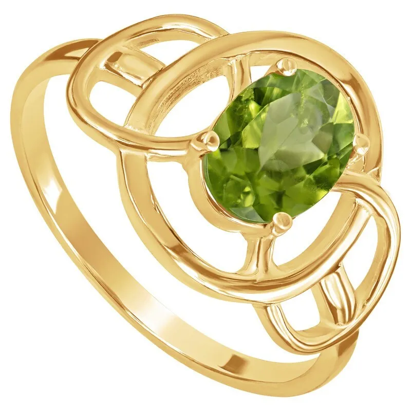 Серебряное кольцо с натуральным хризолитом - коллекция Юнона. Серебряное кольцо 925 пробы с покрытием желтое золото. Цвет покрытия соответствует швейцарскому цветовому стандарту NIHS -FF24ct и цвету чистого золото 999.99. На последней фотографии мы разместили сравнительную фотографию 3 цвета золотого покрытия. Помимо предания золотого цвета Вашему изделию, тонкий слой золота защищает от окисления. Для более стойкого эффекта золочения и долговечности покрытия мы дополнительно наносим подслой палладия (Pd). Средний вес изделия с камнями 2.35 гр. Месторождение: Хризолит (Якутия, Россия). Хризолит (Натуральный) овал 6*8 мм., средний вес: 1.38 карат. Все изделия собственного производства, гарантия 12 месяцев. Арт. 8411. Хризолит – камень, который называют «вечерним изумрудом» за удивительную способность менять цвет в зависимости от освещения. Считается, что хризолит очень любила Клеопатра. Хризолитовый порошок используется для общего восстановления организма, для очищения пищи от ядов и токсинов и улучшения работы ЖКТ. Кроме того, минерал защищает от опасностей и укрепляет дружеские отношения.