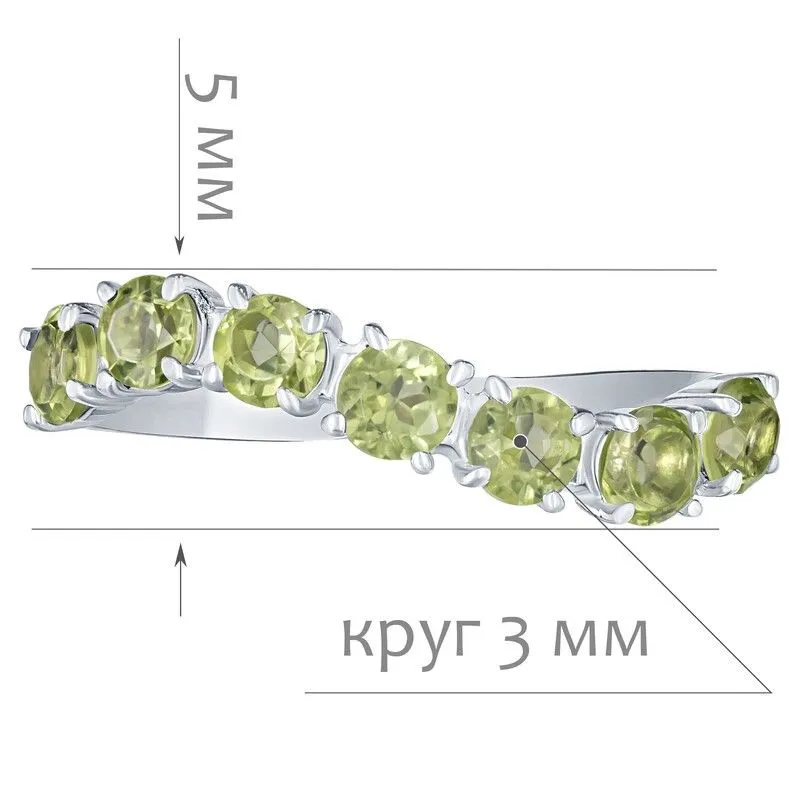 Серебряное кольцо с натуральным хризолитом - коллекция Волна / Чистое Серебро. Средний вес украшения с камнями 1.15 гр. Месторождение: Хризолит (Якутия, Россия). Ювелирные вставки: Хризолит (Натуральный) круг 3 мм., средний вес: 0.13 карат. Все изделия собственного производства и имеют гарантию 12 месяцев, к каждому изделию прилагается паспорт. Арт. 8728AG
