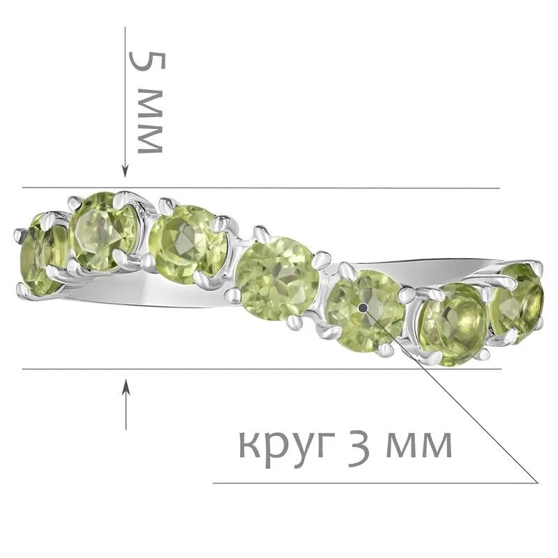 Серебряное кольцо с натуральным хризолитом - коллекция Волна / Без покрытия. Средний вес украшения с камнями 1.15 гр. Месторождение: Хризолит (Якутия, Россия). Ювелирные вставки: Хризолит (Натуральный) круг 3 мм., средний вес: 0.13 карат. Все изделия собственного производства и имеют гарантию 12 месяцев, к каждому изделию прилагается паспорт. Арт. 8728NP