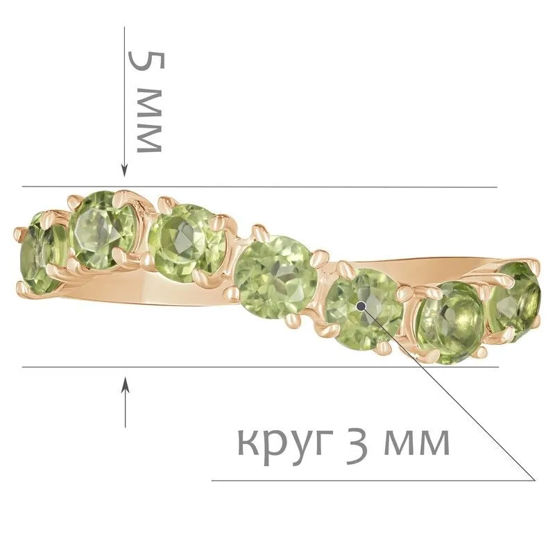 Серебряное кольцо с натуральным хризолитом - коллекция Волна / Красное Золото. Средний вес украшения с камнями 1.15 гр. Месторождение: Хризолит (Якутия, Россия). Ювелирные вставки: Хризолит (Натуральный) круг 3 мм., средний вес: 0.13 карат. Все изделия собственного производства и имеют гарантию 12 месяцев, к каждому изделию прилагается паспорт. Арт. 8728RG