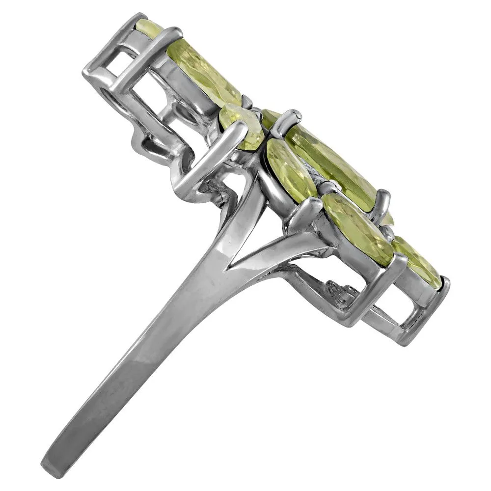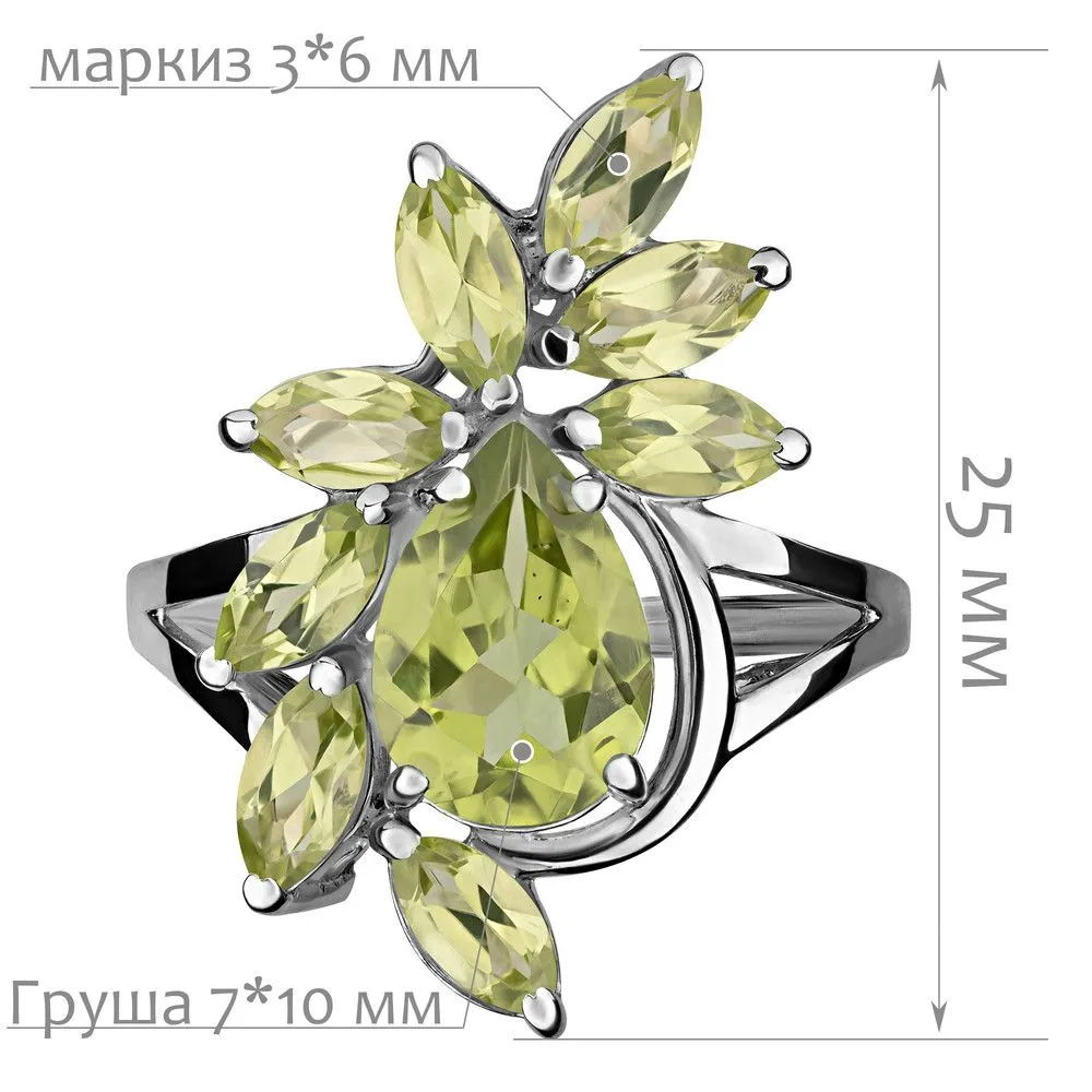 Серебряное кольцо с натуральным хризолитом - коллекция Элегия / покрытие Палладий. Средний вес украшения с камнями 3.95 гр. Месторождение: Хризолит (Якутия, Россия) Ювелирные вставки: Хризолит (Натуральный) груша 7*10 мм., средний вес: 1.89 карат. Хризолит (Натуральный) маркиз 3*6 мм., средний вес: 0.25 карат. Все изделия собственного производства и имеют гарантию 12 месяцев. Арт. 8780PD. Хризолит – камень, который называют «вечерним изумрудом» за удивительную способность менять цвет в зависимости от освещения. Считается, что хризолит очень любила Клеопатра. Хризолитовый порошок используется для общего восстановления организма, для очищения пищи от ядов и токсинов и улучшения работы ЖКТ. Кроме того, минерал защищает от опасностей и укрепляет дружеские отношения.