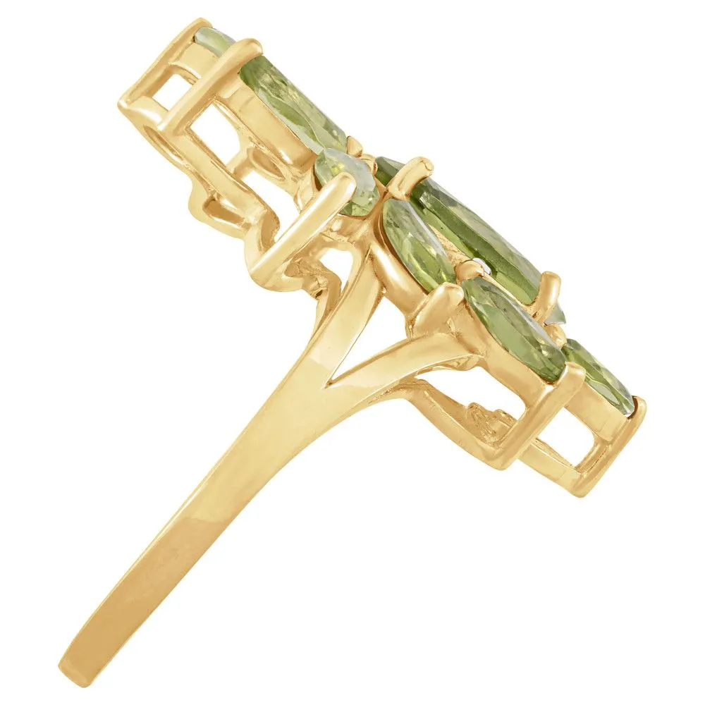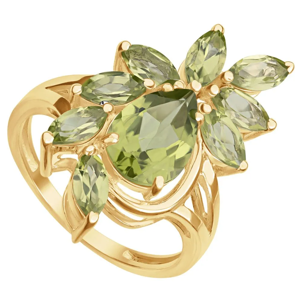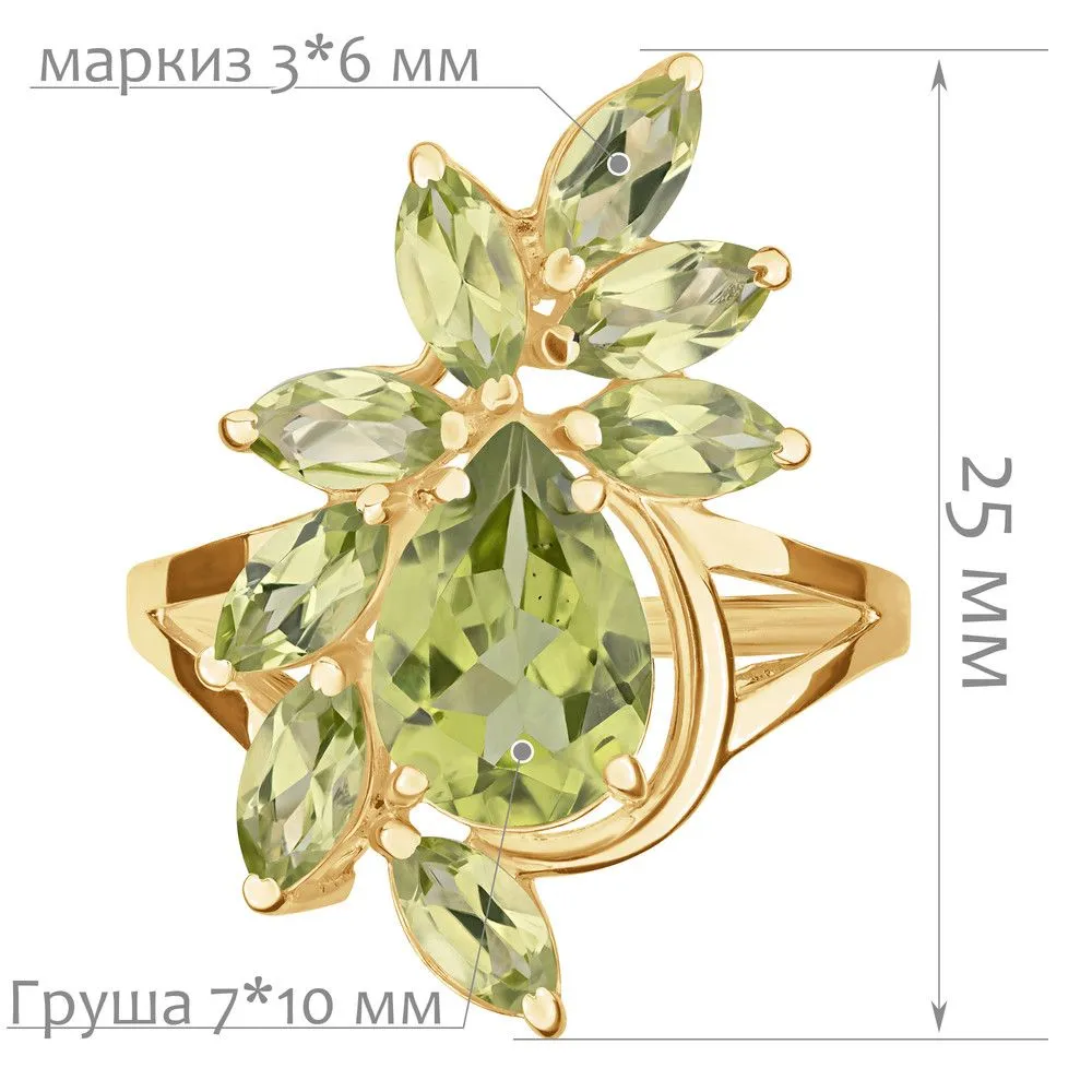 Серебряное кольцо с натуральным хризолитом - коллекция Элегия / покрытие Желтое Золото. Средний вес украшения с камнями 3.97 гр. Месторождение: Хризолит (Якутия, Россия) Ювелирные вставки: Хризолит (Натуральный) груша 7*10 мм., средний вес: 1.89 карат. Хризолит (Натуральный) маркиз 3*6 мм., средний вес: 0.25 карат. Все изделия собственного производства и имеют гарантию 12 месяцев. Арт. 8780YG. Хризолит – камень, который называют «вечерним изумрудом» за удивительную способность менять цвет в зависимости от освещения. Считается, что хризолит очень любила Клеопатра. Хризолитовый порошок используется для общего восстановления организма, для очищения пищи от ядов и токсинов и улучшения работы ЖКТ. Кроме того, минерал защищает от опасностей и укрепляет дружеские отношения.