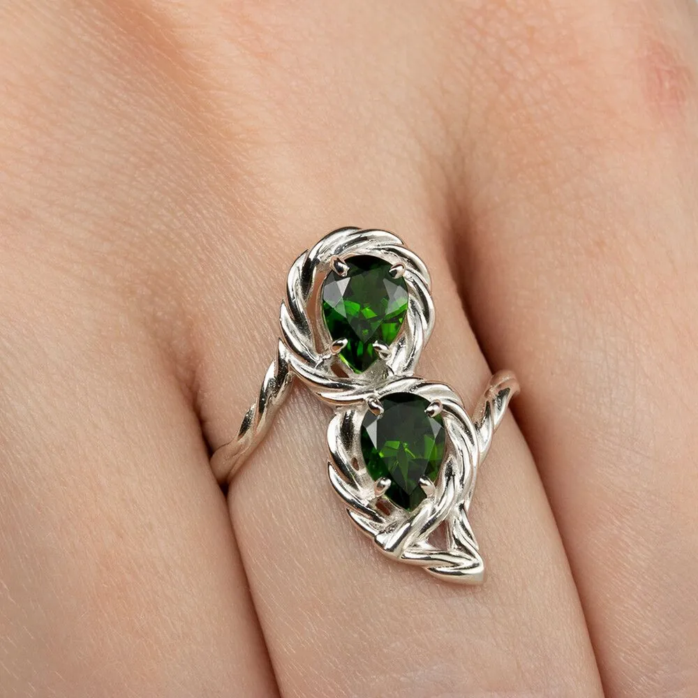 Серебряное кольцо с натуральным хромдиопсидом - коллекция Ривьера / Белый Родий. Средний вес украшения с камнями 2.71 гр. Месторождение: Хромдиопсид (Якутия, Россия). Ювелирные вставки: Хромдиопсид (Натуральный) груша 5*7 мм., средний вес: 0.69 карат. Все изделия собственного производства и имеют гарантию 12 месяцев, к каждому изделию прилагается паспорт. Арт. 8170WR