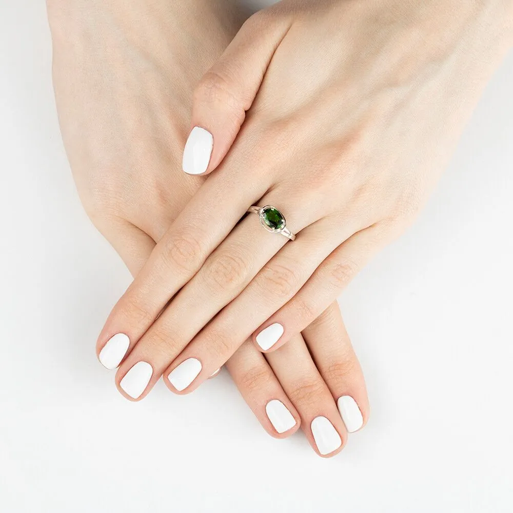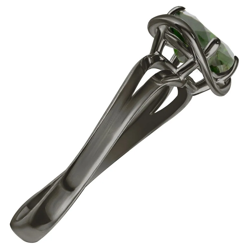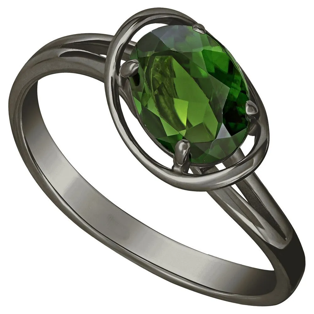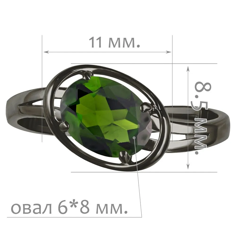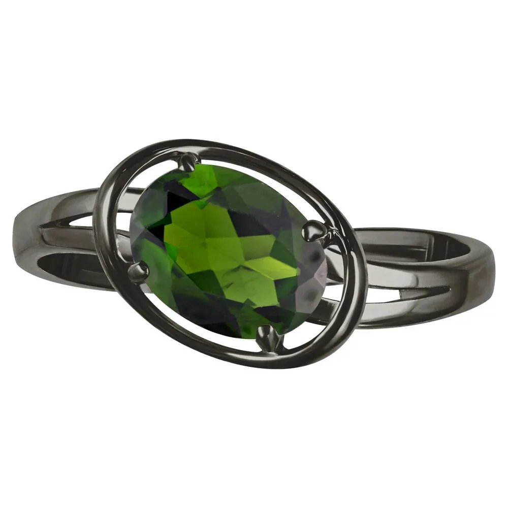 Серебряное кольцо с натуральным хромдиопсидом - коллекция Фрейя / Черный Родий. Средний вес украшения с камнями 2.37 гр. Месторождение: Хромдиопсид (Якутия, Россия). Ювелирные вставки: Хромдиопсид (Натуральный) овал 6*8 мм., средний вес: 1.11 карат. Все изделия собственного производства и имеют гарантию 12 месяцев, к каждому изделию прилагается паспорт. Арт. 8173BR