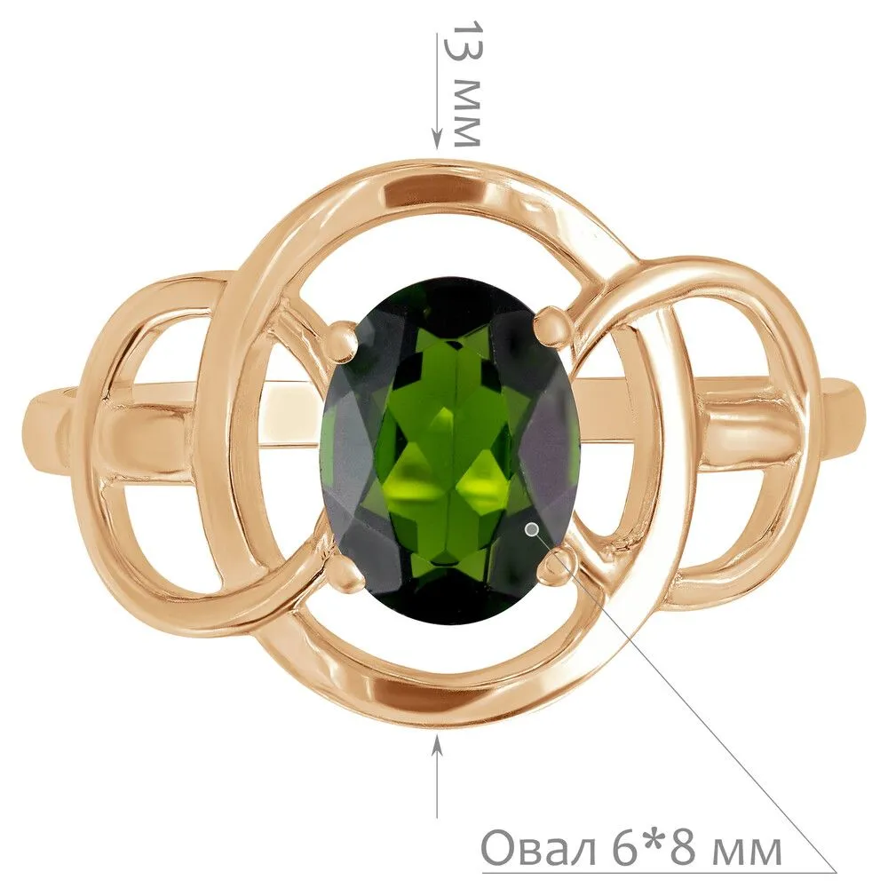 Серебряное кольцо с натуральным хромдиопсидом - коллекция Юнона / Розовое Золото. Средний вес украшения с камнями 2.35 гр. Месторождение: Хромдиопсид (Якутия, Россия). Ювелирные вставки: Хромдиопсид (Натуральный) овал 6*8 мм., средний вес: 1.11 карат. Все изделия собственного производства и имеют гарантию 12 месяцев, к каждому изделию прилагается паспорт. Арт. 8405PG